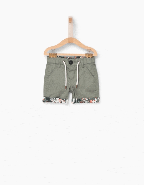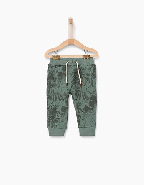 Trektocht door het bos of surfsessie, een onmogelijke keuze. De broek in sweatstof is de bondgenoot van de baby boys, uitgevoerd in lichtkaki en opgepept met een tropische camouflageprint.