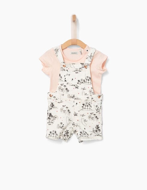 Roze T-shirt en bedrukte tuinbroek, de perfecte look om uw baby girl mee te nemen naar Hollywood Boulevard, in de sporen van de sterren van de beroemdheden.