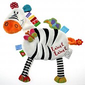 Veel kindjes spelen graag met de labels van hun speelgoed. Daarnaast worden veel kindjes rustig van het knuffelen met een doekje.