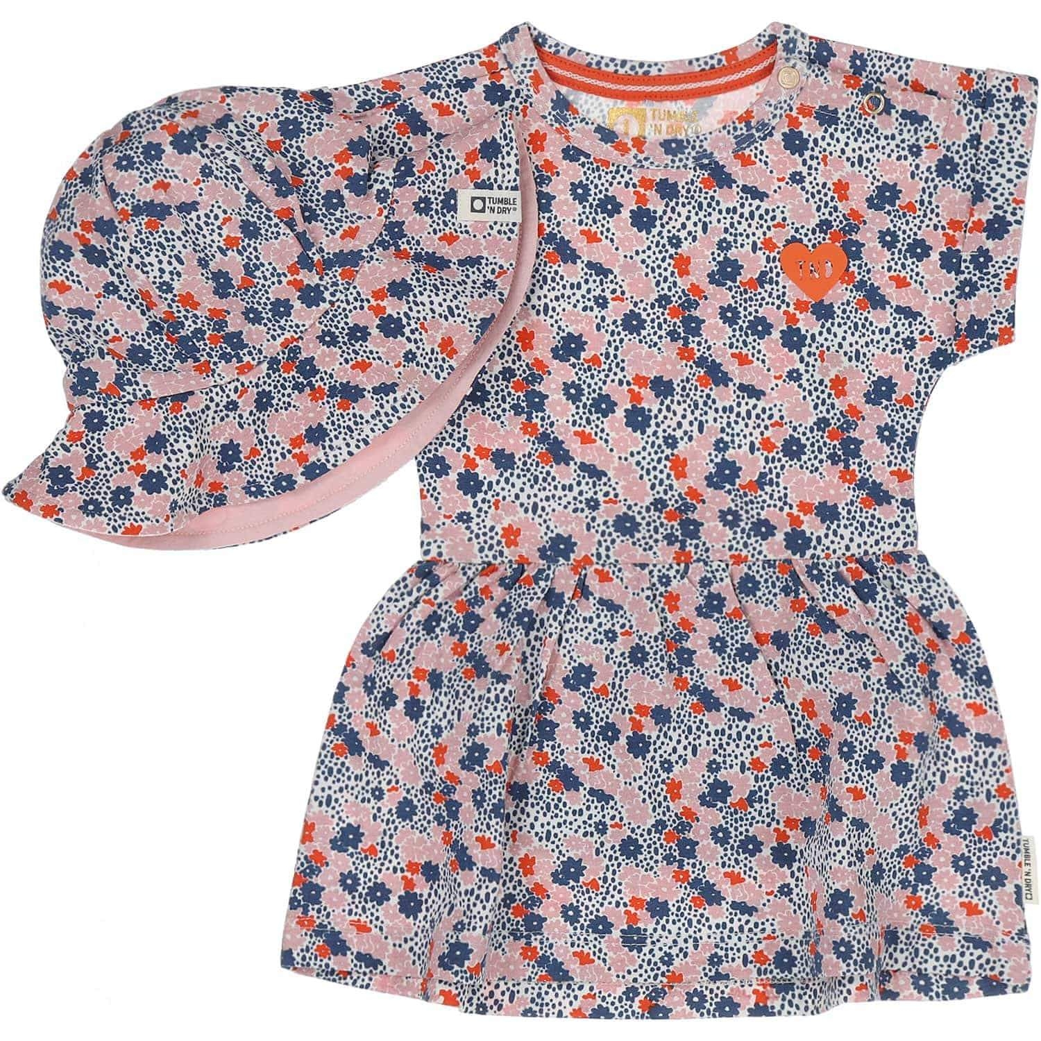 #flowerpower. Dit jurkje met bloemenprint heeft werkelijk alles mee: het ultrazachte biokatoen, de vastgezette opgerolde kapmouwen, de geplooide elastische taille, de drukknopen bij de schouder én de binnenbroek.